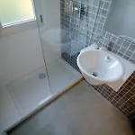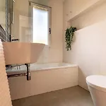 De har utsikt över havet. Badkar och dusch tillhandahålls också.